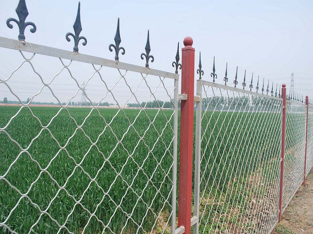 2、无框,立柱形式圆形与方形均可采用,网体网格长方形居多丝经相对大。网体形式多样,结构形式简洁,牢固与美观兼备,既起到隔离防护功能也起到装饰作用。